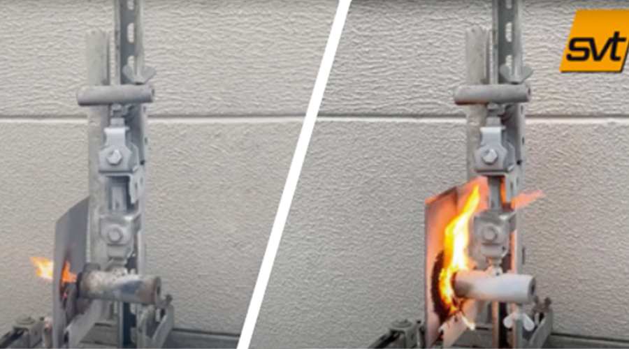 大連義邦SVT輕薄型膨脹防火涂料,為應對高密度動力電池熱失控防護而專項研發。它是一種特制的防火涂層,涂敷于動力電池包的內壁或殼體上,用于電池包內部以及外部的火燒保護,在1200℃度明火條件下,輕薄的涂層會瞬間膨脹超過自身厚度25倍(250mm)以上,經測試耐溫可滿足30分鐘,背板溫度持續保持在150℃度以內,且膨脹薄膜無大塊粉末脫落現象,滿足現代化高密度動力電池熱管理要求。