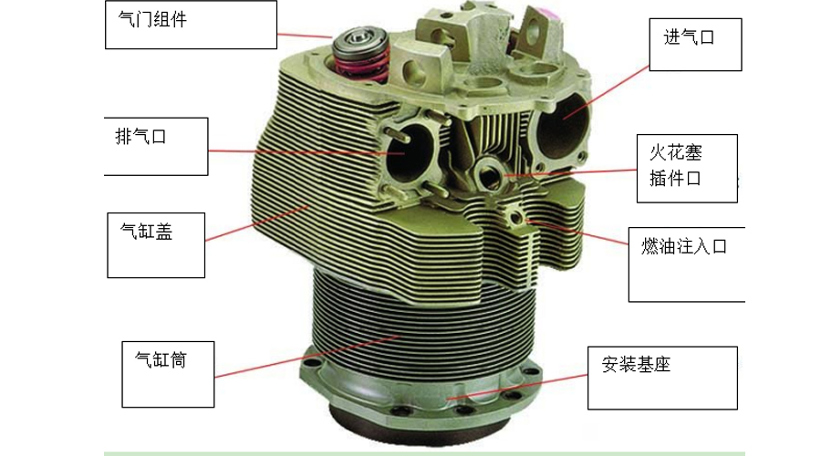 發動機中產生動力的部分稱為氣缸。每個氣缸是由氣缸蓋和氣缸筒兩大部分組成的總成。在組裝時,氣缸蓋通過加熱膨脹,然后擰緊在已冷卻的氣缸筒上。當頭部冷卻和收縮并且槍管升溫和膨脹時,就會形成氣密接頭。大多數使用的氣缸都是以這種方式構造的,使用鋁合金氣缸蓋和鋼制氣缸筒。