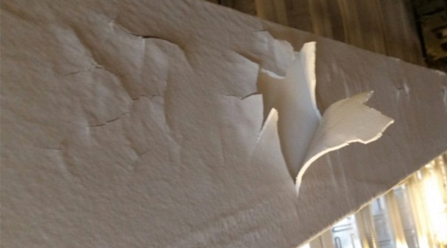 這個防火涂料的分層現象表明,低附著力防火涂層會導致粘合失效,從圖片可以看到它們已經開裂