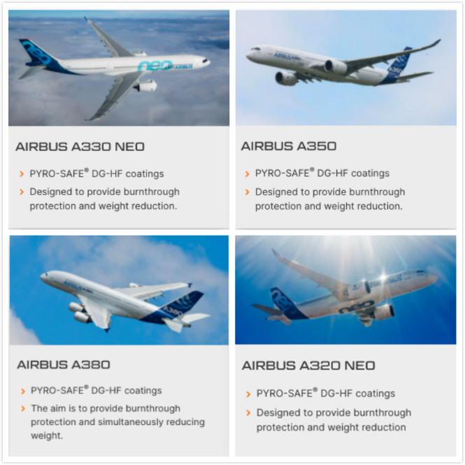 大連義邦的SVT可膨脹石墨型防火涂料,是空客認(rèn)證防火涂料,并應(yīng)用于以上機(jī)型