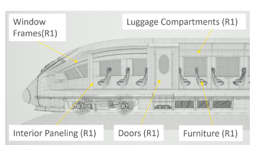 SVT防火織物復(fù)合材料部件在軌道車中的應(yīng)用,部位:比如窗框、行李艙、地板、鑲板、門、座椅等