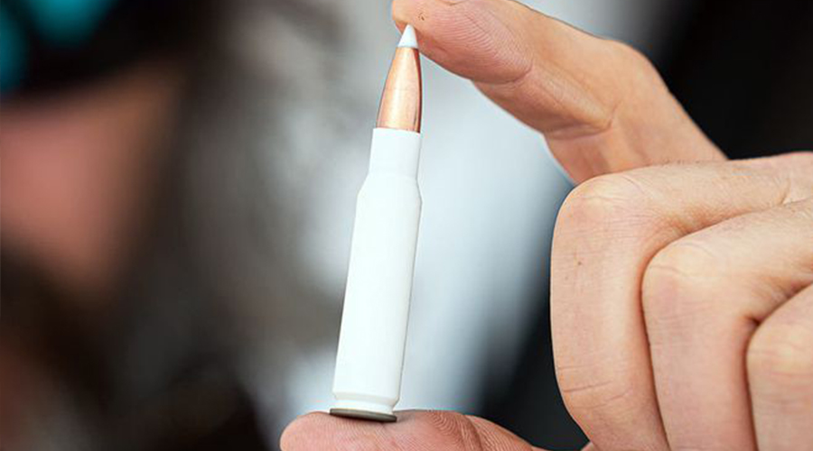 △真正速度公司生產(chǎn)的.308溫徹斯特子彈,藥筒主體采用聚合物制造,底部為鋼制