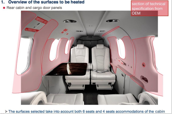 目前,飛機(jī)艙室內(nèi)部加熱系統(tǒng)使用的還是空調(diào)系統(tǒng),坐在窗口附近的乘客通常會(huì)有低溫的感覺(jué),也包括艦船上的艙室中腳腿部寒涼感受,都是整個(gè)艙室溫度不夠均衡導(dǎo)致。Villinger研發(fā)的LiteHeat?艙室內(nèi)部..